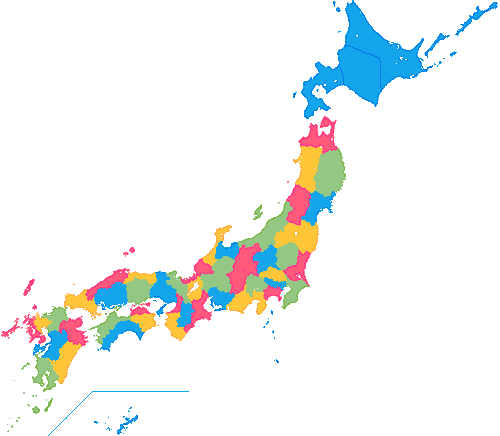 日本地図上の各都道府県または下記の都道府県(地区)名をクリックしてください。